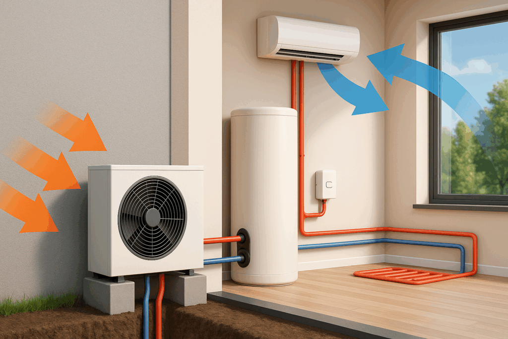 Tepelné čerpadlo vzduch-voda k vysoce energeticky úspornému vytápění, chlazení a výrobě teplé vody.