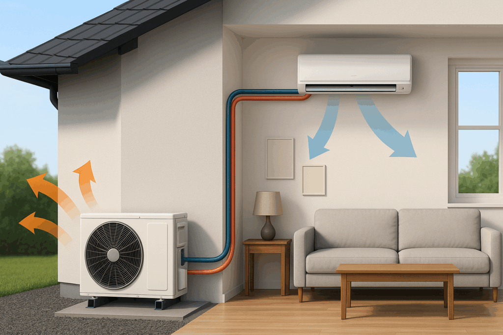 Tepelné čerpadlo vzduch-vzduch pro vytápění a chlazení. Vysoce energeticky účinné klimatizace.